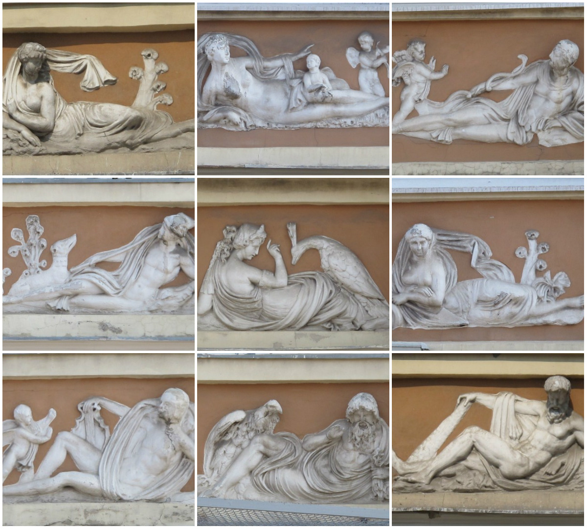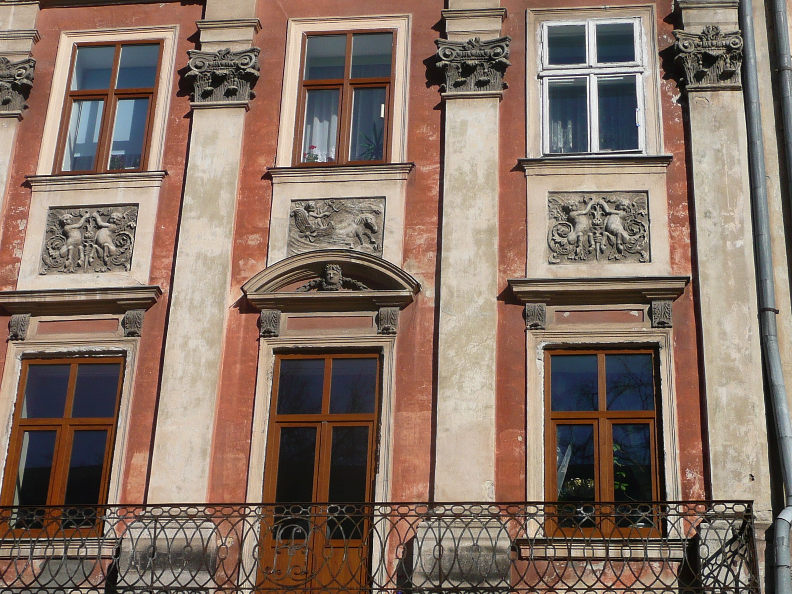 по-друге, 18 барельєфів з зображенням путті (оголені хлопчики); по-третє, скульптурна композиція у центрі фасаду кам’яниці. Останнє – це Афіна, котра стоїть і Марс та Беллона, що прилягли біля неї. Беллона тримає щит, на якому стоять ініціали “JP”(Йозеф Піллер). З обох боків від сцени – самотні скульптури Деметри та Аполлона. Автором робіт є скульптор Гартман Вітвер.