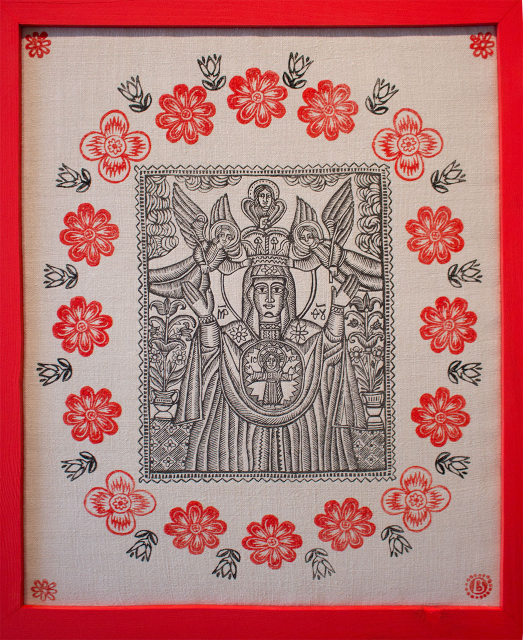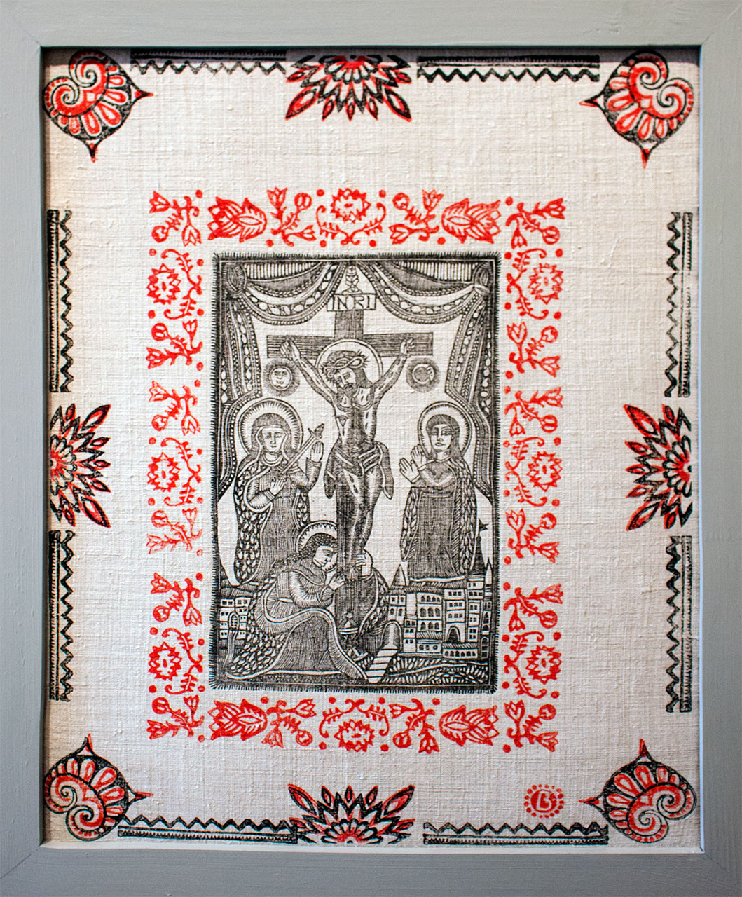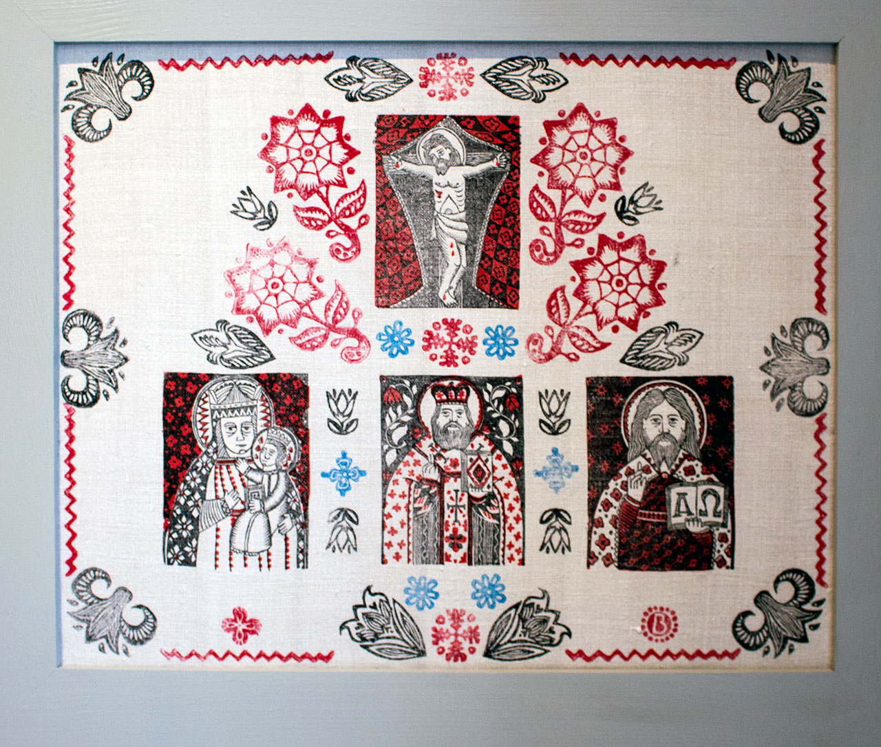 Оздобив Сашко свої ікони вибійкою. Нею колись народ декорував скатертини, фіранки чи навіть одяг. Тепер і митець друк