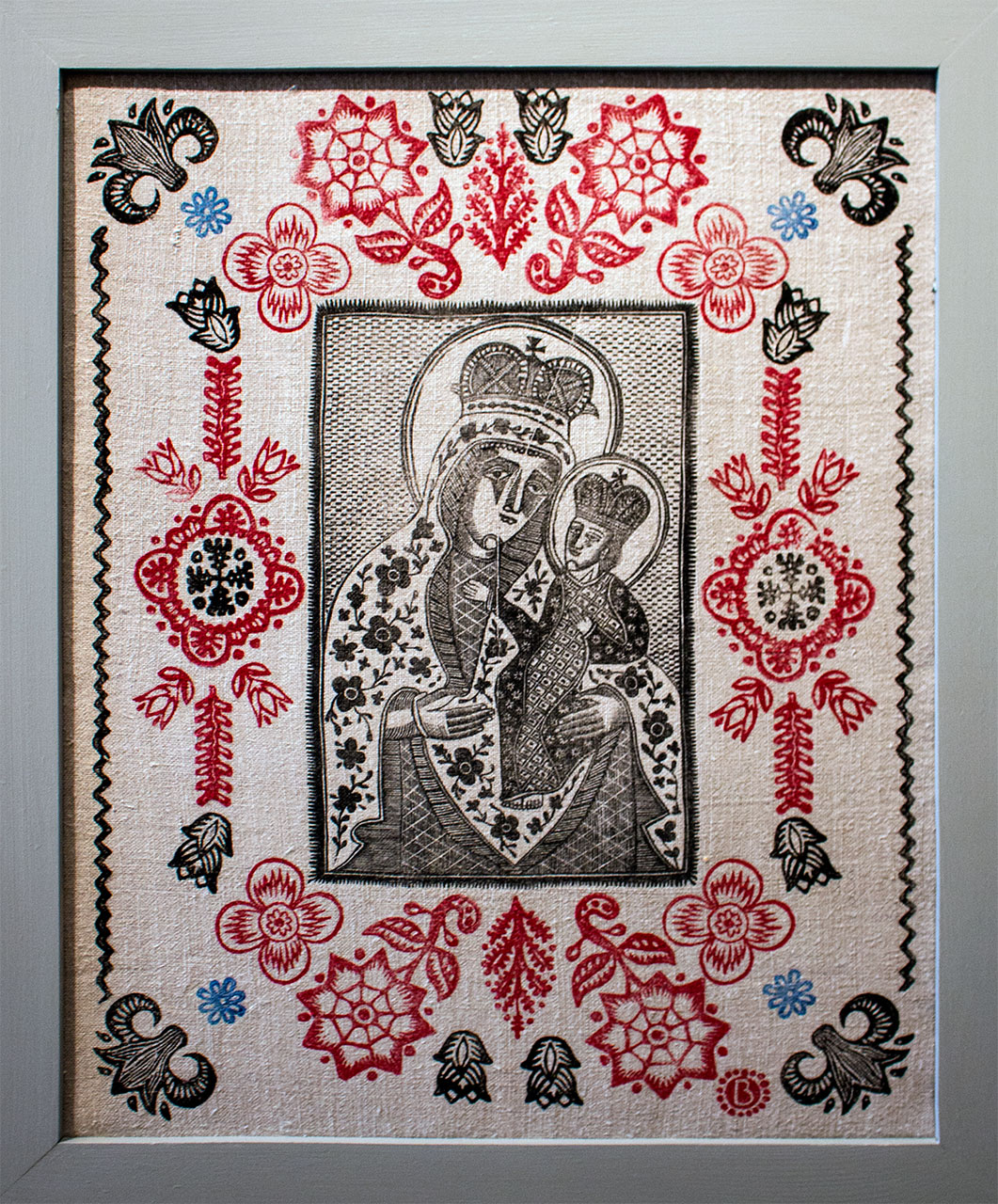 «Якщо колись в місті була якась чудотворна ікона, і люди приїжджали на ярмарок, то хотіли звідти щось привезти додому. От дереворитом робили такі штучки, відбитки тої ікони, як тепер календарики. Я, відповідно, звідти собі взяв ту техніку – зробив копію Львівської Богородиці. Ті відбитки колись були дешеві, бо то був папір. І їх люди привозили додому, розвішували на стіни, клеїли», – продовжує митець Олександр Бриндіков.