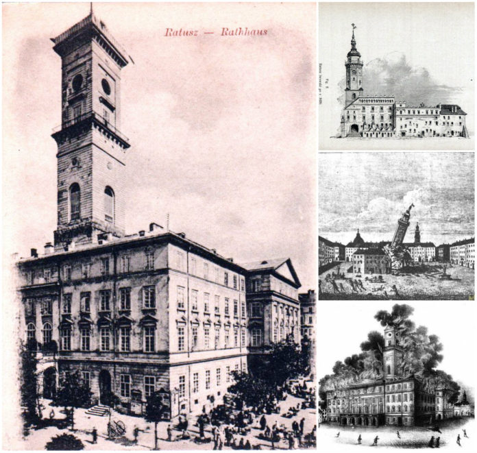 12. 2 листопада 1848 р., під час придушення революційного повстання у Львові, коли місто обстрілювали, загорілася вежа ратуші, а її купол провалився всередину. Згоріли також дахи і частина поверхів ратуші. Вогонь знищив багато цінних документів з міського архіву, канцелярію бургомістра, де згоріли старі печатки та деякі привілеї міста.