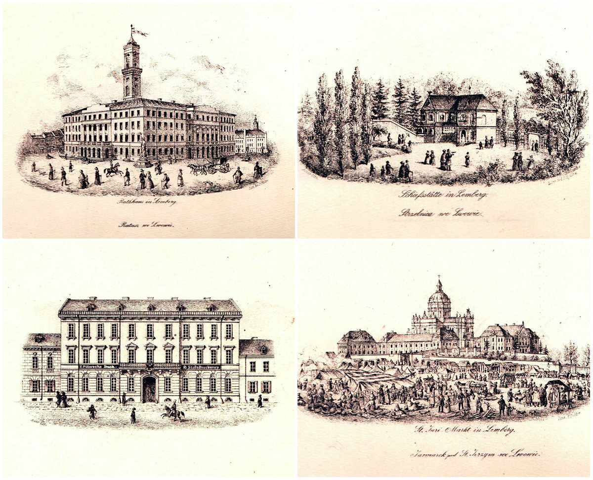 Перша серія складалася з 12, невеликого формату, малюнків на камені із зображенням визначних споруд Львова, ймовірно першої половини ХІХ ст. Друга серія, більшого формату, обіймала 20 літографій із зображенням львівських храмів.