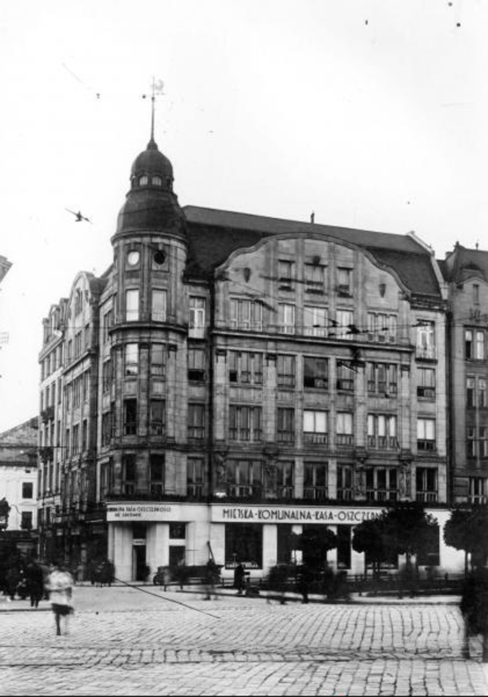 Прибутковий будинок Т. Балабана,1909—1911 рр. Перебудова першого поверху була здійснена А. Захаревичем та скульптором Ю. Стажинським у 1926 р. У кінці XVIII століття, коли було розібрано міські фортифікації, тут було збудовано дві кам’яниці. 1907 року ними володів доктор Теодор Балабан, котрий збудував будинок. 1931 року В. Дайчак провів реконструкцію приміщень першого поверху для потреб Міської ощаної каси.
