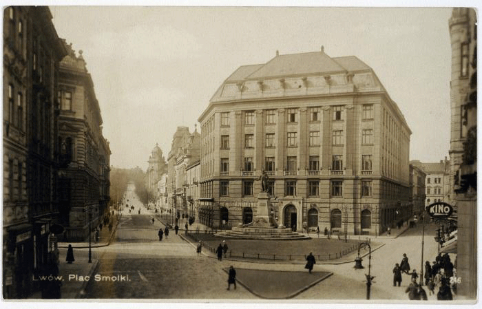 Колишній Акційний кооперативний банк, 1909-1911 рр. Будинок був побудований для Акціонерного союзного банку. У міжвоєнний період у будинку розмістили дирекцію пошти, а за радянських часів – обласне управління внутрішніх справ. В партері будинку ліворуч головного входу розташувалася кав’ярня «Варшава», а праворуч, у 1912-1921 роках кінотеатр «Водевіль».