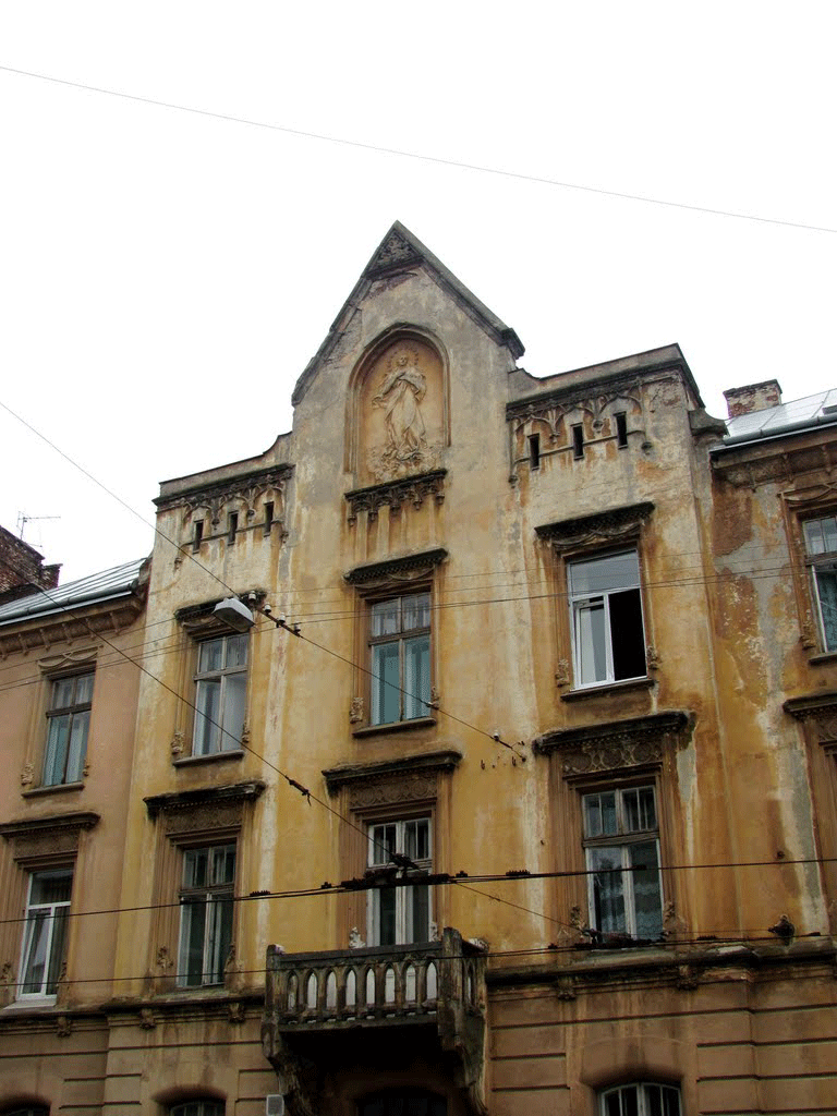 Будинок із рисами модернізованої готики і романського стилю у вирішенні фасаду. Збудований у 1904—1905 для родини Бромільських, за проектом Альфреда Захаревича. На аттику розміщено великий рельєф Богоматері скульптора Теобальда Оркасевича. Пізніше належав Українському товариству допомоги інвалідам.