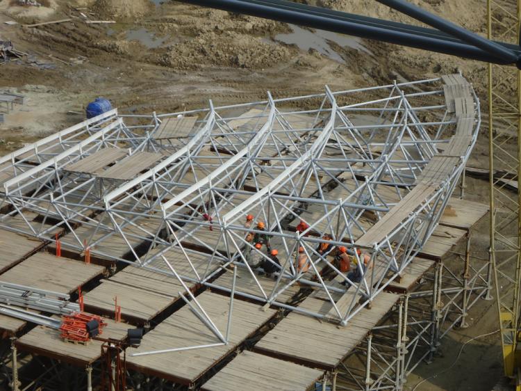- 23 червня 2010 року на стадіоні встановили першу «складку» – бетонну конструкцію трибун. Протягом липня-серпня велися роботи по будівництву ригелів на другому ярусі, а також здійснювався монтаж «складок».