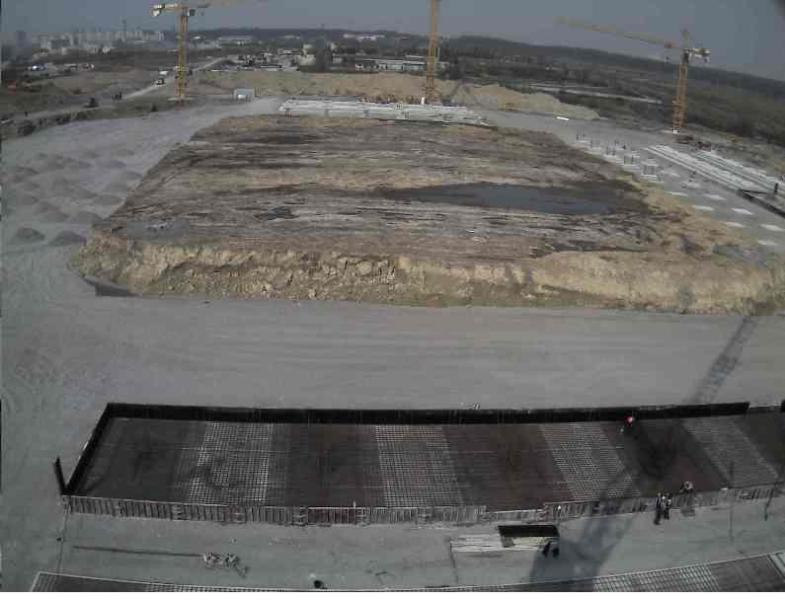 - З 15 листопада 2008 року на будівельний майданчик почали звозити техніку, монтувати 10 баштових кранів, проводити земляні роботи для влаштування фундаменту Стадіону.
