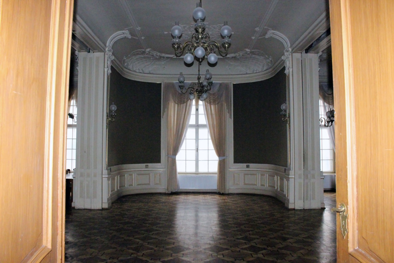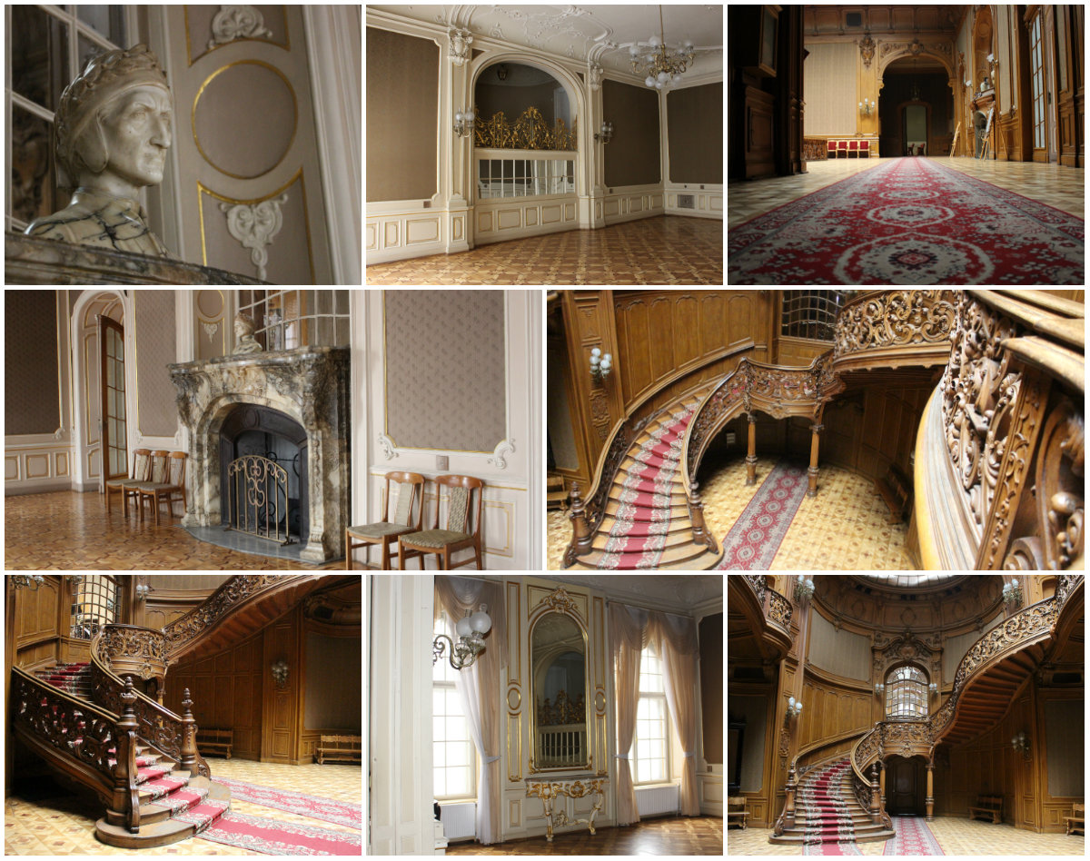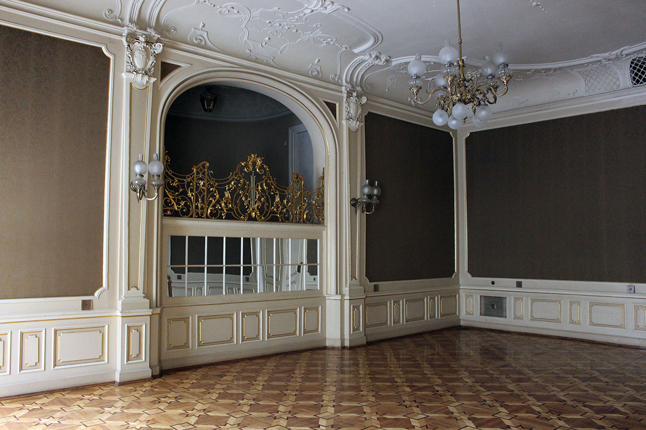 Бальні зали касино прикрашені вишуканими шпалерами по стінах, витонченою ліпниною, завершує залу балкончик з позолоченою решіткою для музикантів, до речі, там є невеличка кімнатка де музиканти могли відпочити.