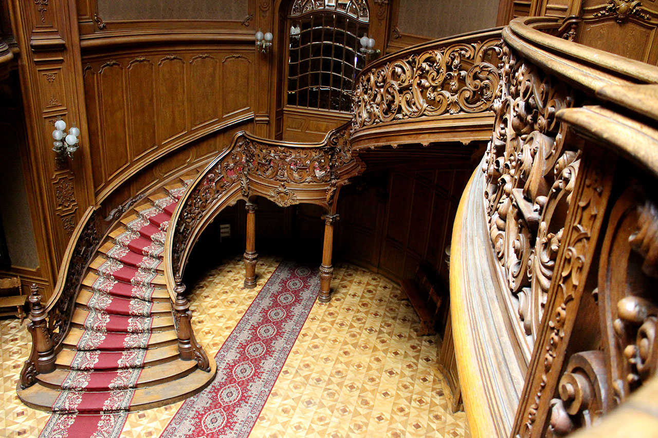 5. Розкішні дерев’яні сходи були виконані за проектом відомого угорського скульптора Шандора фон Яраї