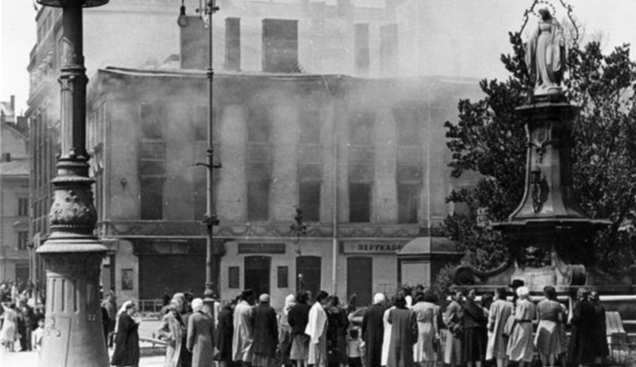 Цікавий той факт, що Львів вважається містом, котре не було зруйноване війною. Тривалих боїв за місто ніхто не вів. Бомбардування були мінімальними, «героїчного відступу», на зразок київського, радянська влада у Львові, на щастя, не здійснила, а тому більшість міських будівель і пам’яток повністю вціліли. Проте, навіть попри такі обставини частина міста усе таки потерпіла від авіабомб, а деякі історичні споруди міста відійшли у небуття. Збереглась і низка фотографій, що увічнили руйнування та передають одну із жахливих сторін війни.