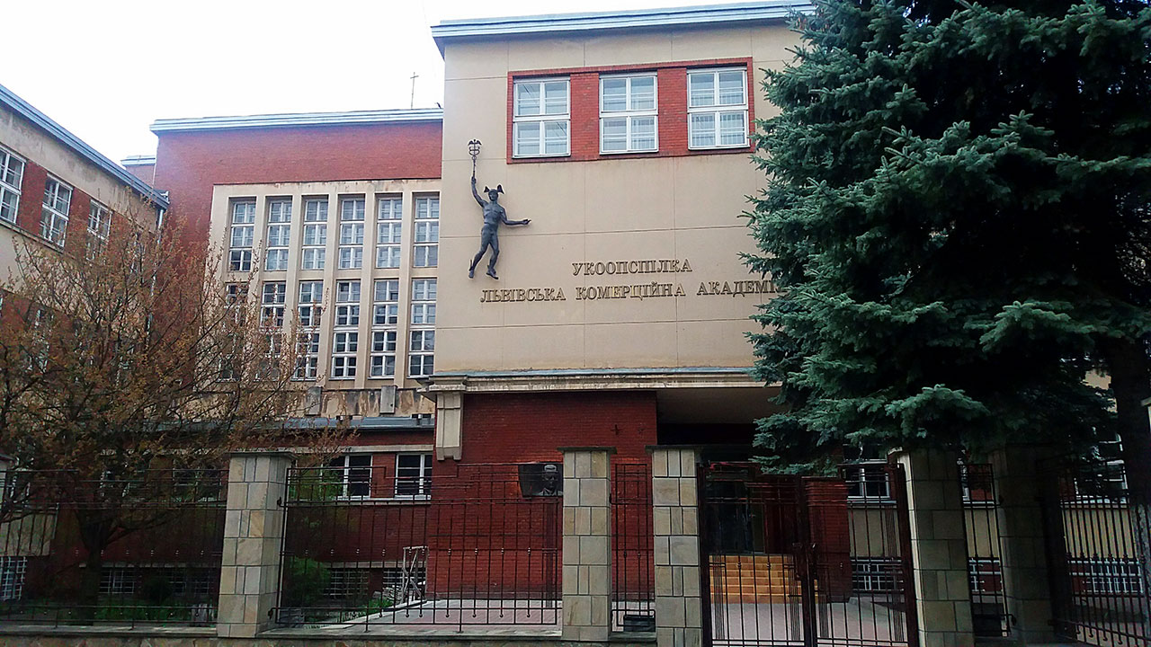 Львів, вул. Туган-Барановського 10. Після створення – Технічна, а згодом – Торгова академія (на фасаді можна побачити Меркурія – бог торгівлі). Нині – Львівська комерційна академія.