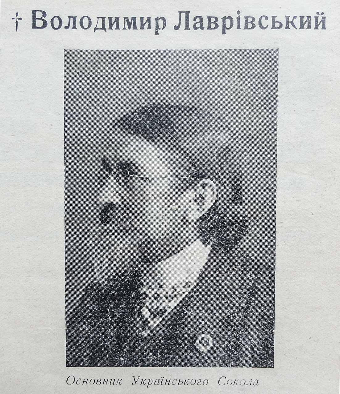 З огляду на це пропоную читачеві ознайомитися з основними віхами його біографії, які подано у статті професора українського тіловиховання, провідного діяча «Сокола-Батька» Степана Гайдучка «Володимир Лаврівський», опублікованій 1939 р. у львівському часописі «Сокільські Вісти». Публікую із збереженням мови та правопису оригіналу.
