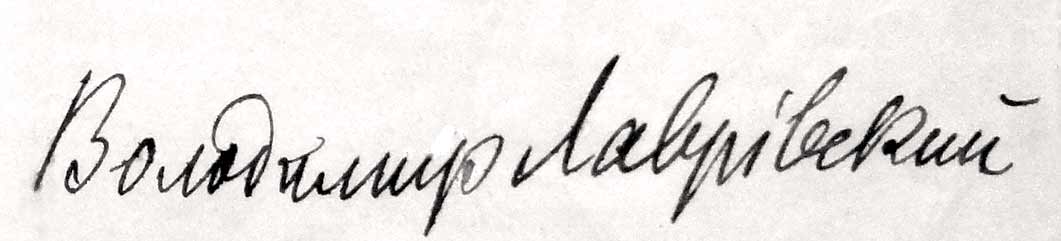 Майже в забутті і самоті доживав свого поважного віку В[олодимир] Лаврівський, бо помер у 86-ім році життя. Нехай же рідна земля буде Йому легка!