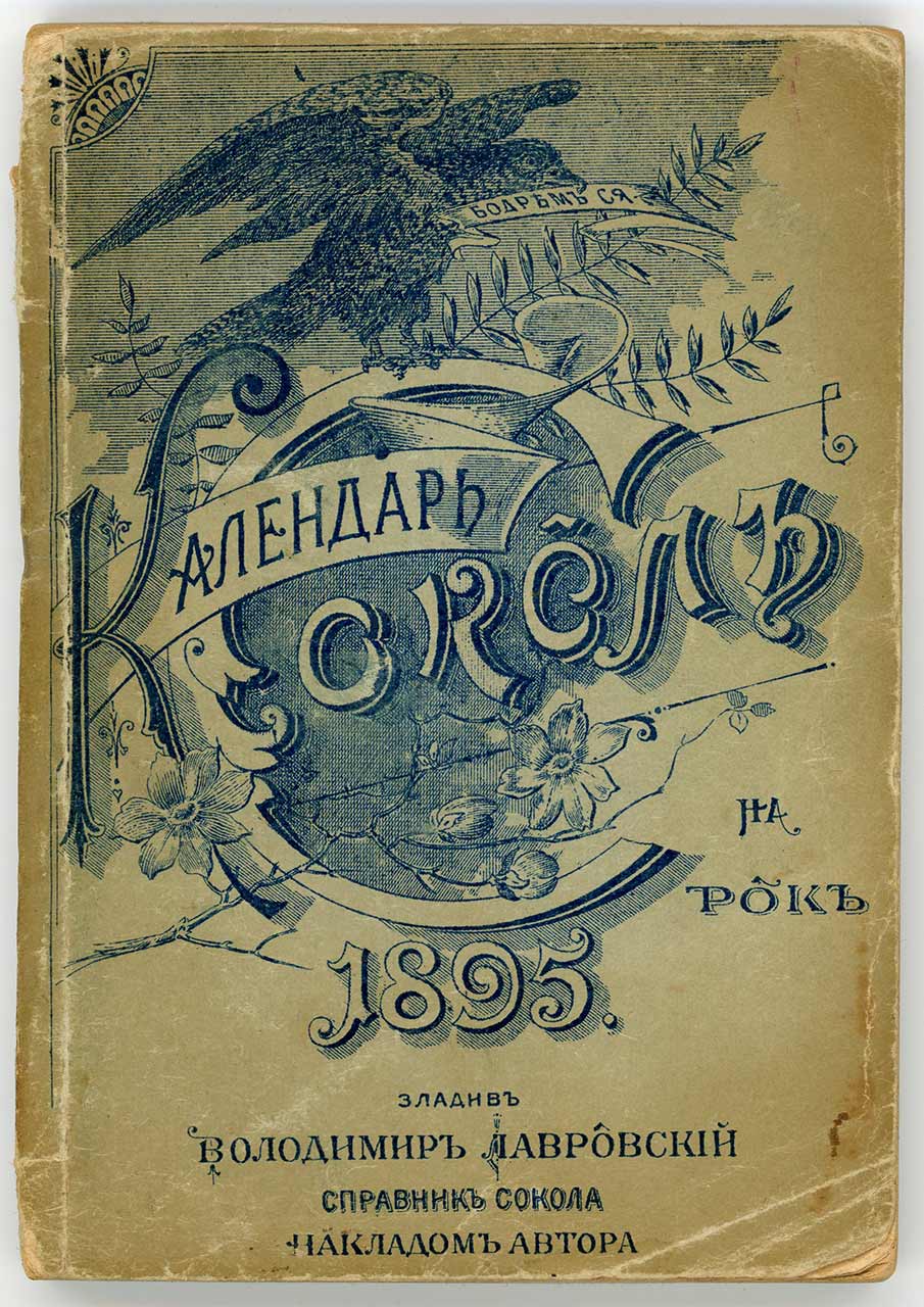 В[олодимира] Лаврівського вибрали перші загальні збори нинішнього «Сокола-Батька» справником і він був рушієм діяльности Товариства. Хоча його влада кривим оком гляділа на його працю та передвчасно спенсіонувала – в своїй діяльности не подався. Вже в р. 1894. видає своїм коштом маленький «Калєндар Сокіл» на 1895. р. В ньому подає найконечнішу річ, а саме перший впоряд з українською слівнею. Коли зважимо, що про впоряд «стражи народньої» з р. 1848. у нас зовсім забули, то його крок був дуже важний у початковій роботі сокільства. Такий самий калєндар видає він на рік 1897. і калєндар «Руський Сокіл» на рік 1899. В останньому подає перший наш підручник для пожежних сторожей, а також «Устав союза сокільських товариств». А треба знати, що в тих часах ми такого підручника до пожежництва не мали.