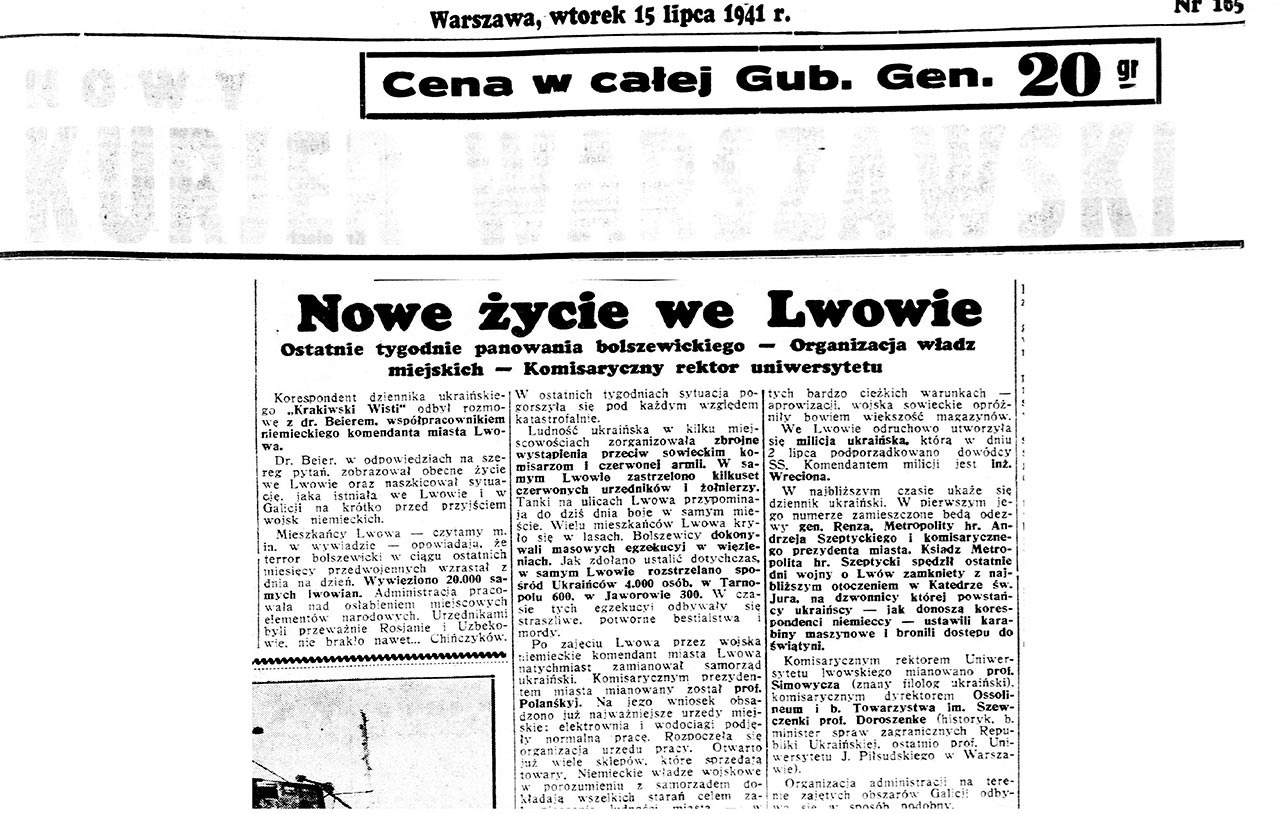 …Позиція Митрополита Андрея у червні 1941 року щодо німців — після їхнього вступу до Львова — було своєрідною реакцією на те, що пережили під радянською окупацією. Андрей Шептицький вітав Вермахт як армію, яка — як вважав — буде репрезентувати європейську цивілізацію. Обидва брати Шептицькі знали Австрію та Німеччину. Вчилися в тодішньому Бреслау (нині Вроцлаві), Мюнхені та Відні. Мали німецьких і австрійських приятелів. Не могли собі й уявити, що після большевизму може прийти щось гірше. Приходу німців до Львова товаришувала надія, що ІІІ Рейх визнає самостійну Україну…