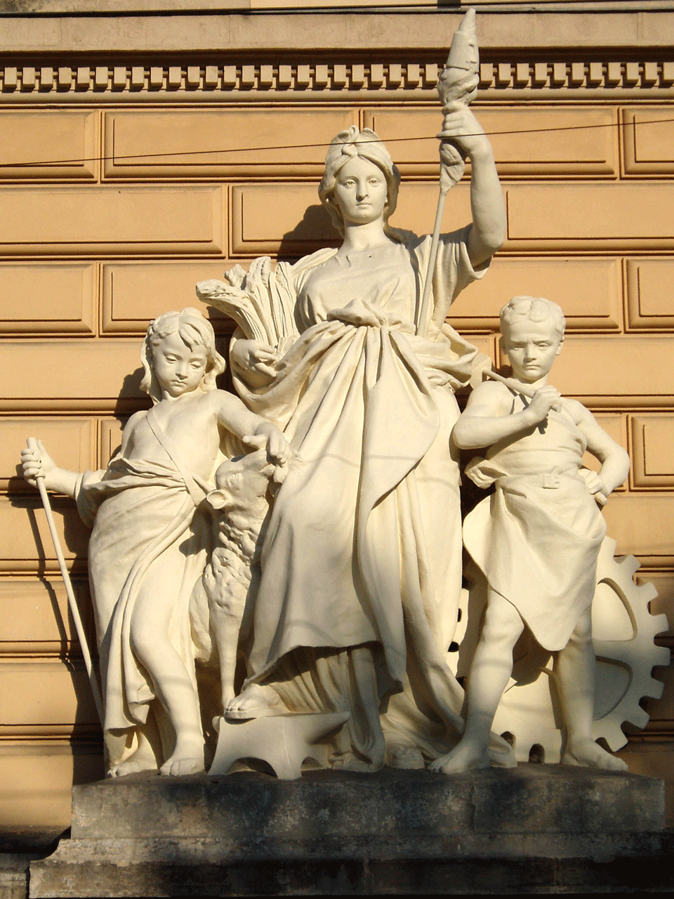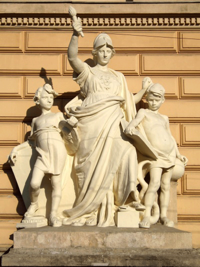 За цими сухими фактами ховається складна історія українсько – польських взаємин та державних стратегій Габсбургів у ХІХ столітті. В силу певних обставин, від 70-х рр. ХІХ ст., польський національний рух отримав найсприятливіші умови для свого розвитку. Тому скульптурне оздоблення будівлі було одним з найбагатших у Львові, але й несло в собі цілий ряд символічних елементів. До роботи над ним долучилися Леонард Марконі, Теодор Ріґер, Тадеуш Баронч, Зиґмунт Трембецький, Фелікс Мікульський, Зиґмунт Ґорґолевський.