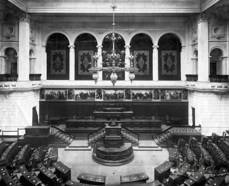 На другому поверсі будинку розташовувалась сама зала засідань Крайового сейму і т. зв. “зала маршалів”. Залу засідань прикрашали полотна відомого Яна Матейка – залу засідань – картина “Люблінська унія”, залу маршалів — “Конституція 3 травня 1791 p.”. Зараз вони знаходяться у Варшаві. В залі маршалків висіли портрети маршалків крайового сейму. Таке оздоблення також було невипадковим і всіляко підкреслювало польський характер того, що відбувалося усередині.