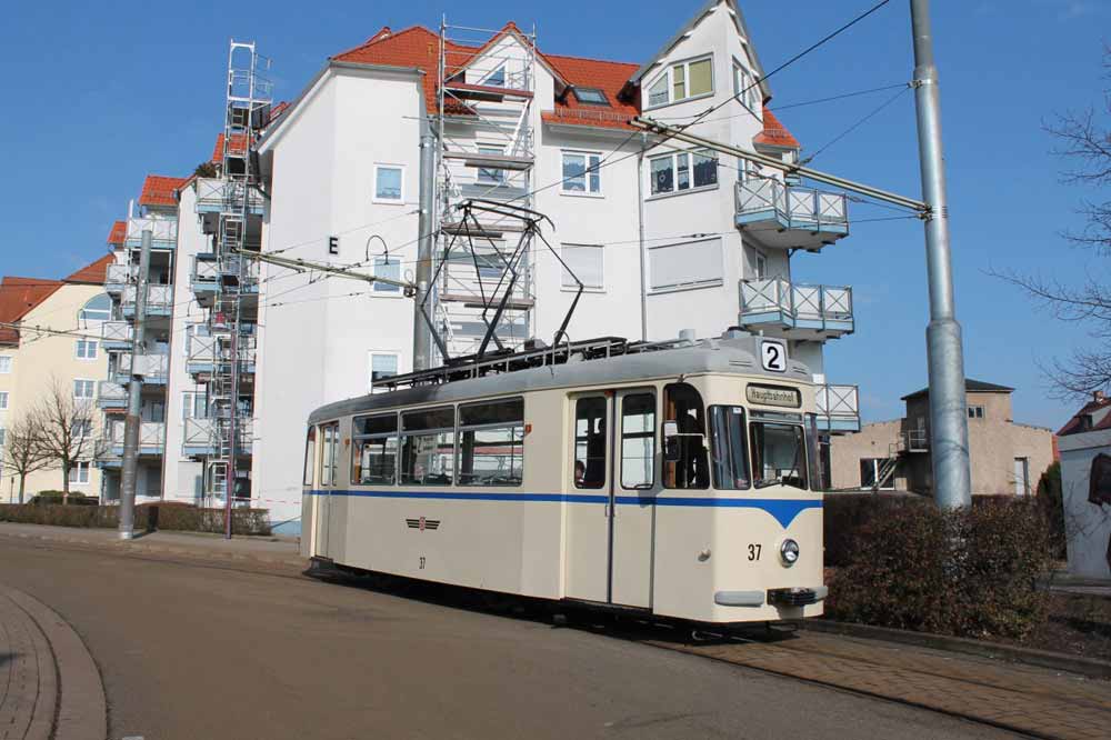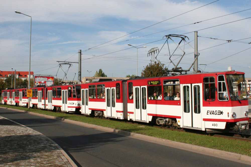 Із міста Ерфурта прибуло 5 трамвайних вагонів 1986 – 1987 рр. випуску, які пройшли часткову модернізацію у 1993 – 1995 рр., в тому числі – оснащені електронними маршрутовказівниками. Перші два вагони привезли із Ерфурта до Львова 5 липня 2013 року, їх розмістили на території трамвайного депо № 1 на вул. Городоцькій, 185. Протягом липня 2013 року надійшли іще 3 вагони. За словами директора ЛКП «Львівелектротранс», закупівля одного трамвайного вагона у Ерфурті обійшлася біля 500 тис. грн. разом із доставкою і розмитненням. Через ремонти трамвайний колій у місті, трамваї, доставлені із Ерфурта, почали працювати із пасажирами тільки 17 грудня 2013 року.