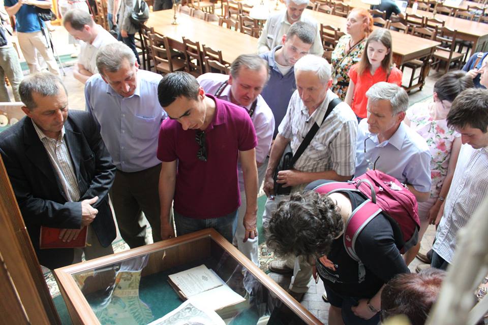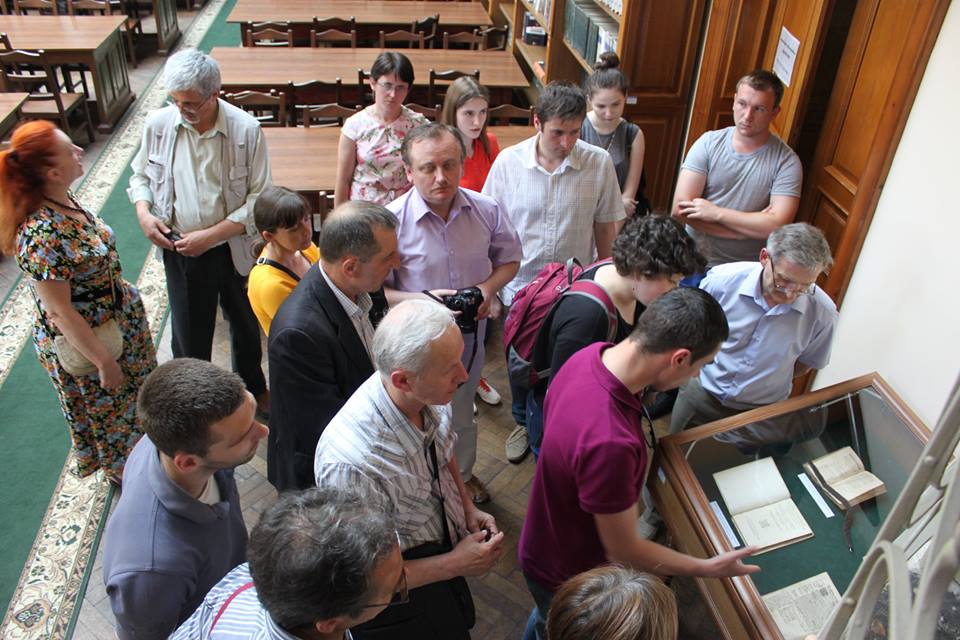В другій половині семінару, яку можна окреслити як більш практична, частину з того, про що говорилось у теоретичному блоці, можна було побачити на власні очі. До уваги відвідувачів бібліотеки та учасників семінару було представлено виставку стародрукованих видань з фондів Наукової бібліотеки Львівського національного університету імені Івана Франка, які пов’язані з астрономією, а також виставку документів з Архіву ЛНУ ім. Івана Франка (особові справи співробітників астрономічної обсерваторії та кафедри астрономії кін. 30 – поч. 40 – х років ХХ ст.).