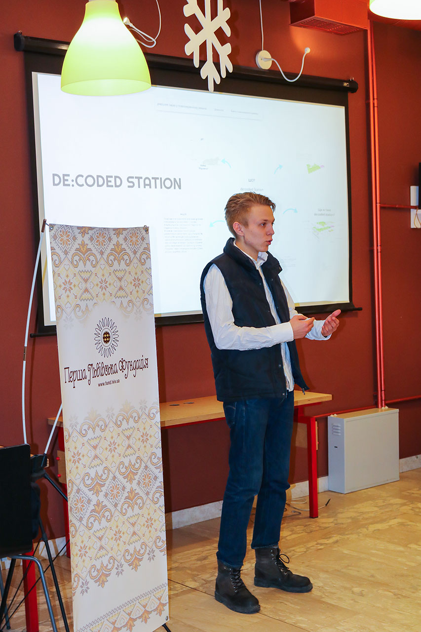 Він наголосив, що зараз у Львові молодь потребує розвитку своїх зацікавлень не лише на різних професійних фестивалях, а щодень. Ініціатори цього проекту вже навіть знайшли приміщення в районі Підзамча. Вони переконані, що De:coded station має стати центром технологічних рішень; місцем, яке консолідуватиме дієву молодь. Зараз вже мають певне бачення складових стартап-хабу: фото та відеостудії, коворкінг-центри, майстерні та багато необхідного для того, щоб стати справжнім центром для розвитку.