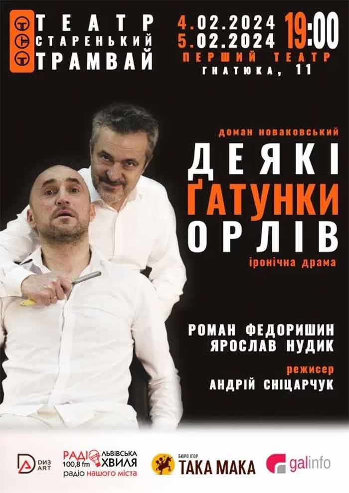 Іронічну драму «Деякі ґатунки орлів» покажуть у Першому театрі у Львові вже 4 та 5 лютого.