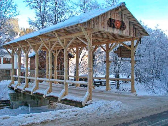 Але, як кажуть, все так не було! Професор М. С. Глушко у монографії «Сухопутні засоби транспорту українців Карпат другої пол. XIX — поч. XX ст.» стверджує, що в Українських Карпатах побутували криті дерев’яні мости з двосхилими дахами (у м. Турка і с. Комарники на Львівщині, в селах Люта, Загорб, Жорнава і Синевир на Закарпатті) [8].