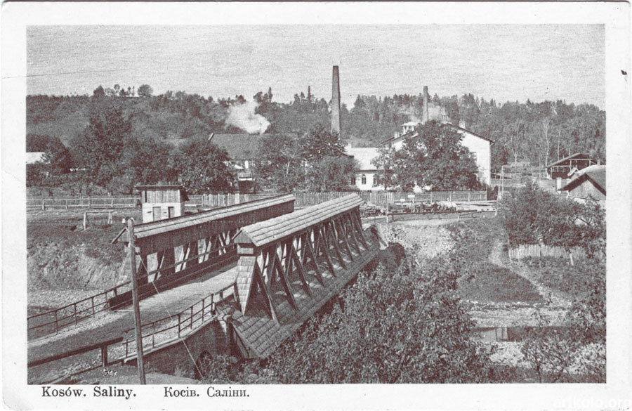 Другий міст – у м. Косів – був настільки мальовничим, ще й на диво гарно розташованим, що потрапив на дуже багато фотографій. Називався він Банським мостом, або по-польськи Салінарським. Слова баня і саліна означали солеварню, яку власне видно за річкою. Цікаво, що він не був повністю покритий дахом. Дашки прикривали тільки його бічні конструктивні елементи. Можна зробити припущення, що міст у Соколівці теж не мав даху, бо скоріш за все це також був проект Ю. Рихтера.