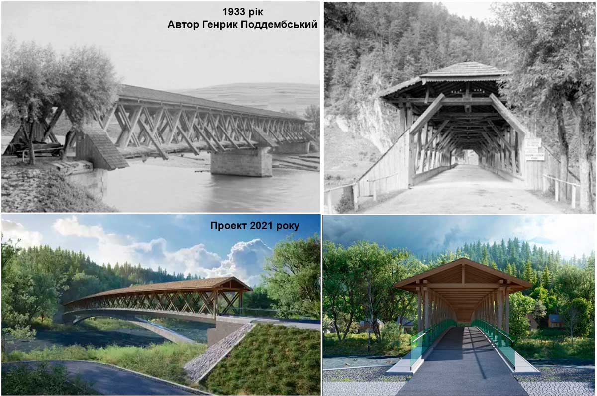 Сучасні технології імпрегнування і консервації деревини дозволяють повернутись до критих дерев’яних мостів. Можна сподіватись що вслід за готелями влади курортних місцевостей теж вдадуться до маркетінґу і почнуть будувати громадські криті дерев’яні мости, які стануть додатковою принадою для туристів і відпочивальників. Приклад можна взяти з наших сусідів – в Польщі рушило будівництво мосту над р. Дунаєць між Кросьцєнко і Щавницею (фото станом на січень 2024 р. тут). Попередній критий міст, збудований у 1871-1872 рр., знищила катастрофічна повінь 1934 року. З того часу це місце носить назву «Зірваний міст», а на берегах ще недавно можна було помітити жалюгідні залишки причілків. Тепер новий місток логічно доповнить трасу Velo Dunajec і значно покращить пересування піших туристів. І хоча він має залізо-бетонну конструкцію, верхня частина буде зроблена з дерева, нагадуючи попередній критий міст.