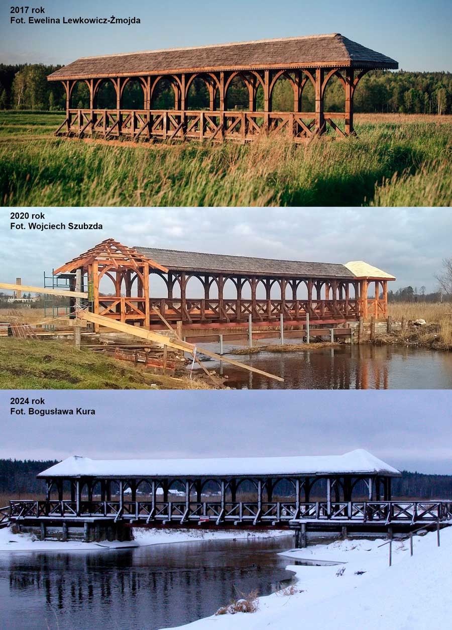 Ще один польський приклад дбайливого ставлення до критих мостів можна побачити над річкою Супрасль. Стара піша кладка потребувала ремонту, тому її зняли, відремонтували, а потім поставили на інше місце. Оскільки там русло річки було дещо ширше, для містка зробили солідні бетонні причілки, що дозволило додати до кладки своєрідні альтанки. Тепер вона стала зручніша, мальовничіша і, відповідно, більш популярна серед туристів.