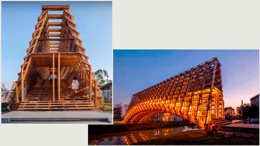 В сучасних курортах, де дозволено будувати щось новітнє, не порушуючи архітектурну гармонію оточення, можна спробувати реалізувати навіть якийсь чудернацький архітектурний проект. Один з останніх проектів, що викликав спалах захоплення в усьому світі — критий дерев’яний міст у провінції Цзянмінь у Китаї. Аркова переправа довжиною понад 25 метрів накрита стрімким дахом, який у поперечному перерізі нагадує смереку. Плити, що виконують роль черепиці, пошарово звужуються догори, але без тісного накладання один на одного.