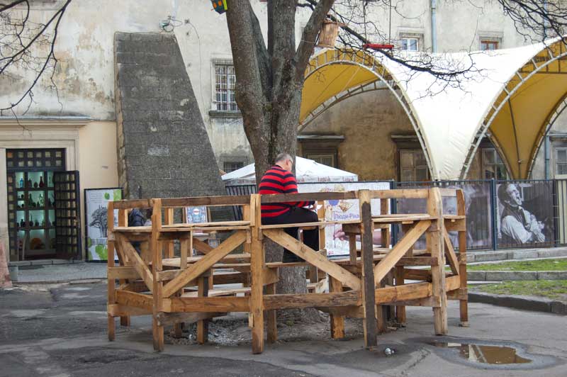 Навколо клена спорудили також імпровізований дерев’яний амфітеатр, куди можна прийти, посидіти, попрацювати чи просто подумати. Дехто приходить поспілкуватися з молодим красенем-кленом. Адже 120 -років для клена, який може прожити 500, це ще навіть не юнацький вік.
