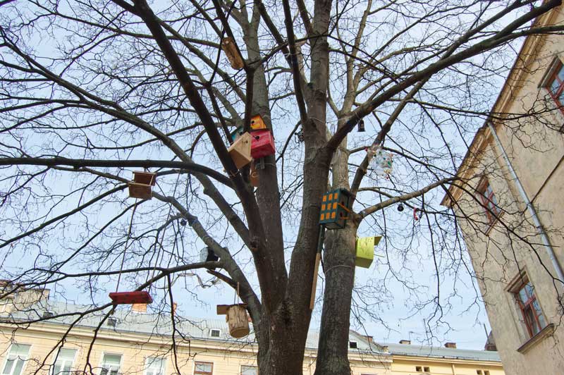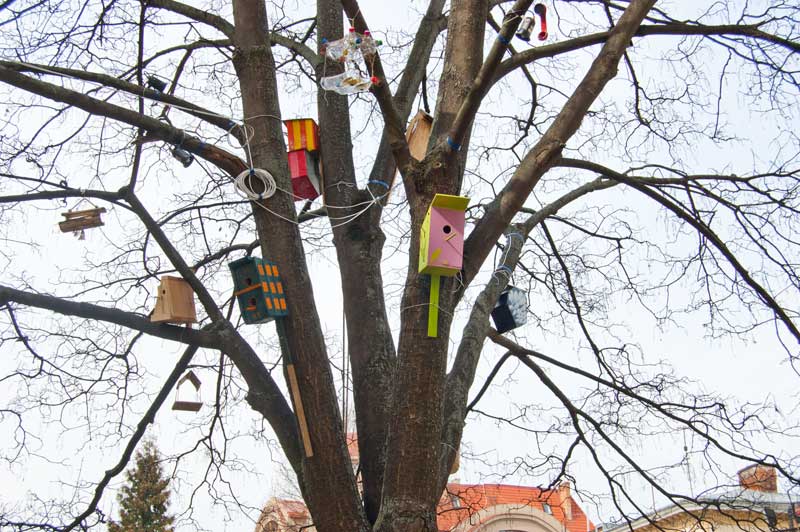 Столітньому клену було присвоєно спеціальний паспорт та Qrkod. А різнокольорові годівнички, які виготовили студенти кафедри дизайну Національного лісотехнічного університету, тепер стали окрасою дерева.