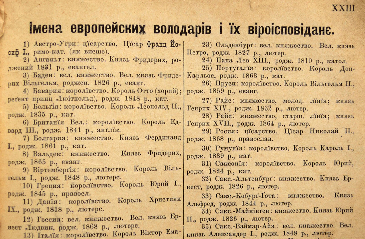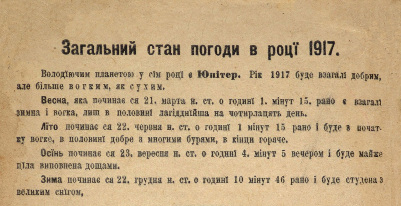 Дивує, що у кожному випуску були розділи «З року на рік», «Що нового», у яких детально описано усі важливі події, які відбулися упродовж року: тут тобі й повінь в Америці, боротьба французького парламенту з церквою, громадянська війна проти старого султана в Марокко і аварія «Титаніка». Одним словом, читачі були в курсі усіх подій, що відбувалися у світі. А ще – курси валют, розклад ярмарків, оголошення та реклама, щоб вже точно нічого не пропустити.