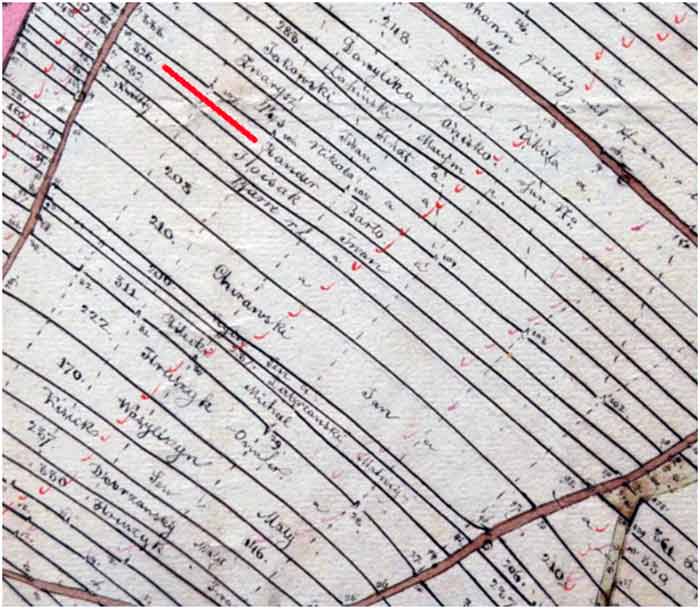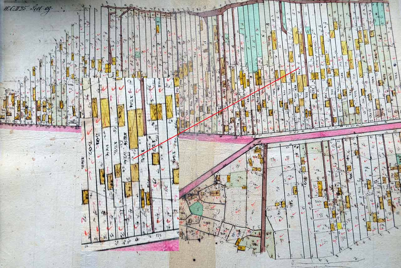 [14] У Йосифінській метриці власниками ділянок назвали Івана Петрила – №135 і Андруся Штундака – №133.