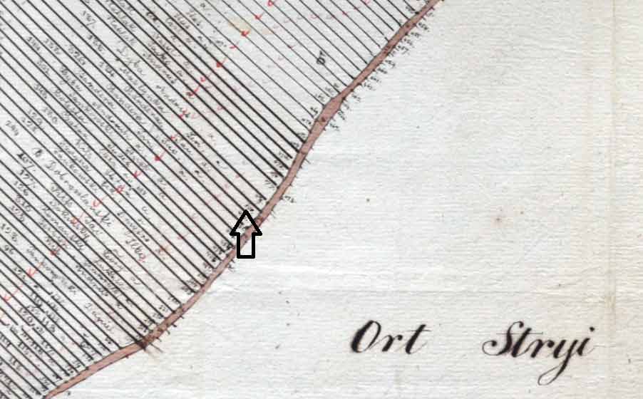 Під час формування кадастрової карти міста Стрия 1851 року землемір геометр 3-го класу Йоганн Баудиш (Johann Baudysz) склав польовий план земельних ділянок, зберігаючи номери садиб[13].