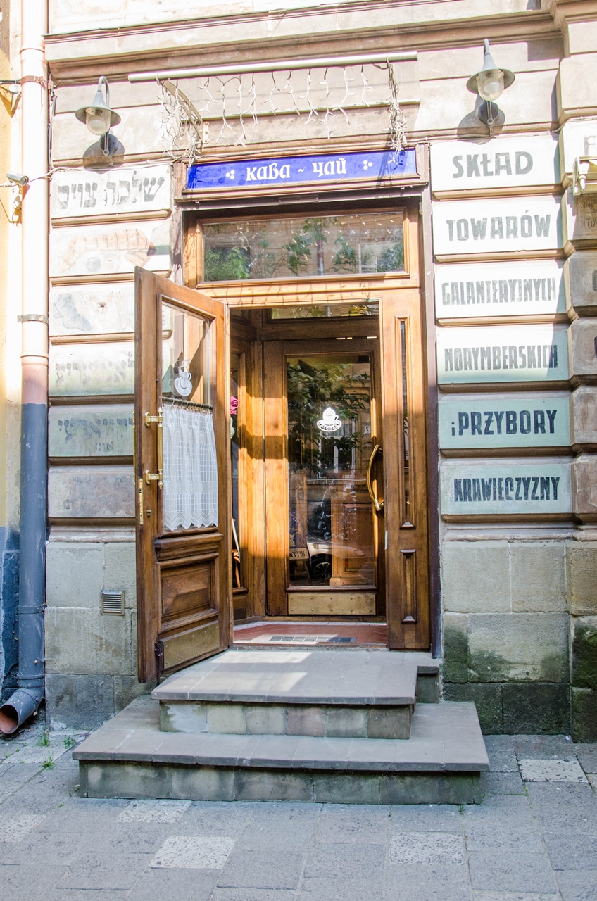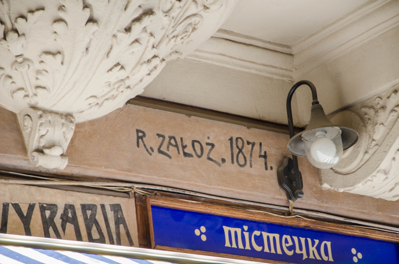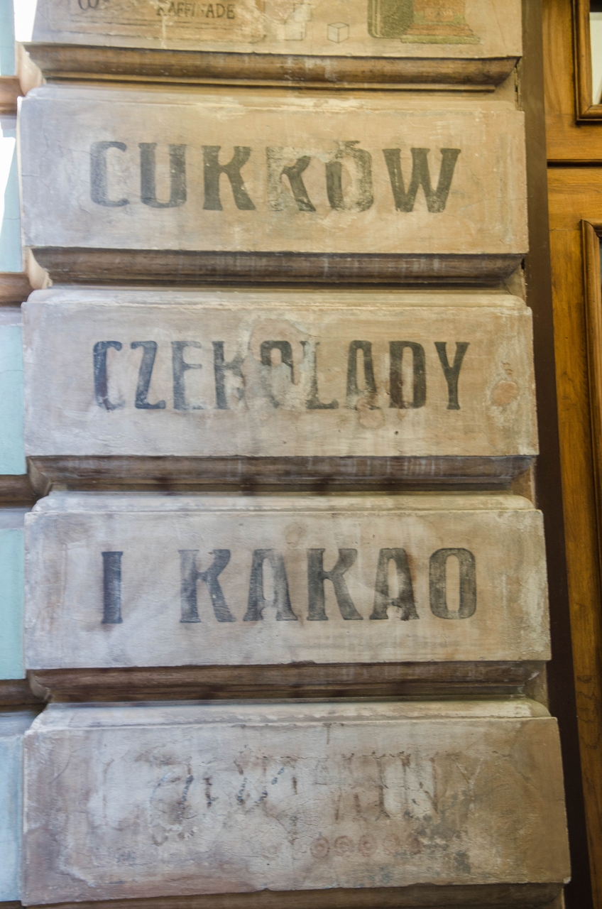 Відреставровані або видобуті з-під шару штукатурки написи на стінах перших поверхів будинків можна бачити у середмісті. Серед вивісок трапляються такі: «кав’ярня», «молочарня», «продукти», «хліб», «чай», «тканини» та ін.