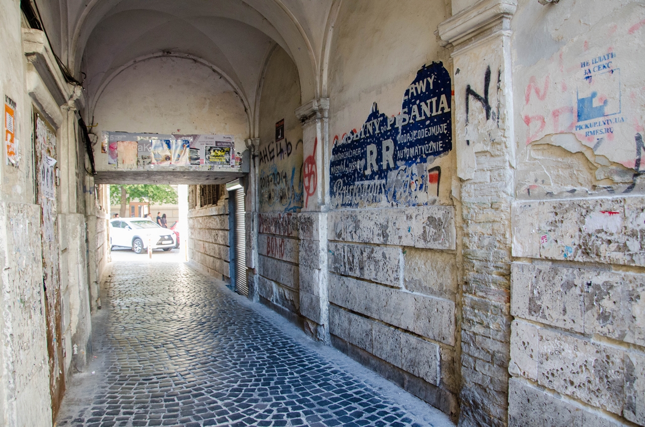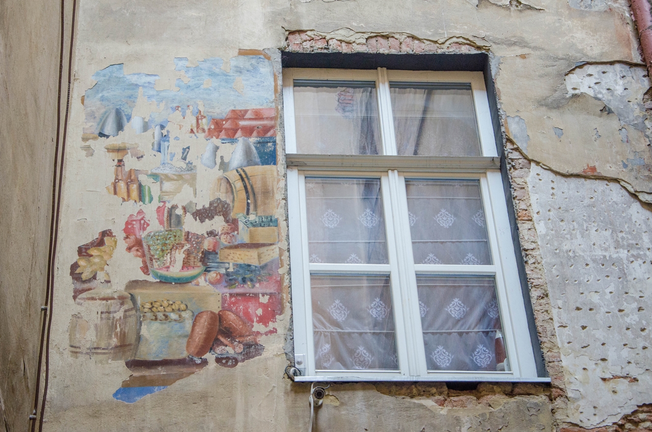 Зі стін львівських будинків проглядають написи, які раніше заміняли сучасні сітілайти, білборди та вивіски.