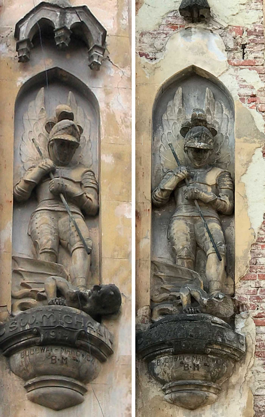 На жаль, у третій композиції диявол вже втратив голову (і зовсім не з вини Архистратига), тож я розміщу тут дві світлини у стилі «було-стало», хоча це й не є темою даного посту.