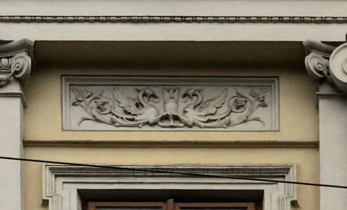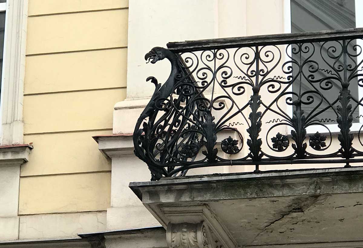 До речі, таких крилатих створінь зі зміїною шиєю і пташиною головою у нас дуже багато. Їх можна зустріти в оформленні балконних ґраток або рельєфних вставках над вікнами, як от на будинку на вул. Коперника, 26.