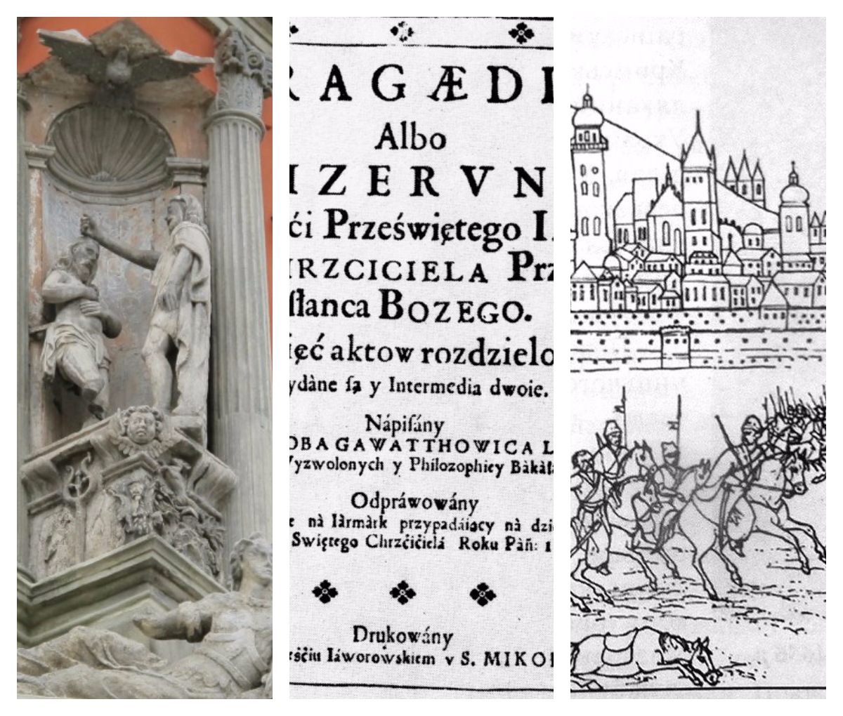 “Трагедію, або Образ” Якуба Ґаватовича надрукував відомий львівський видавець Ян Шеліга. Як це було зазначено у самій назві твору, перші постановки за цим текстом відбувалися ще у Кам’янці-Струмиловій (тепер Кам’янка-Бузька), де драматург викладав. Михайло Павлик висловив припущення, що Ґаватович був не тільки режисером, але також грав ролі у виставах (зокрема, самого Івана Хрестителя). Таким чином, інші ролі найімовірніше мали би виконували його учні.