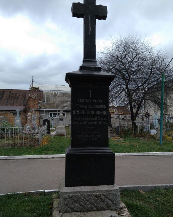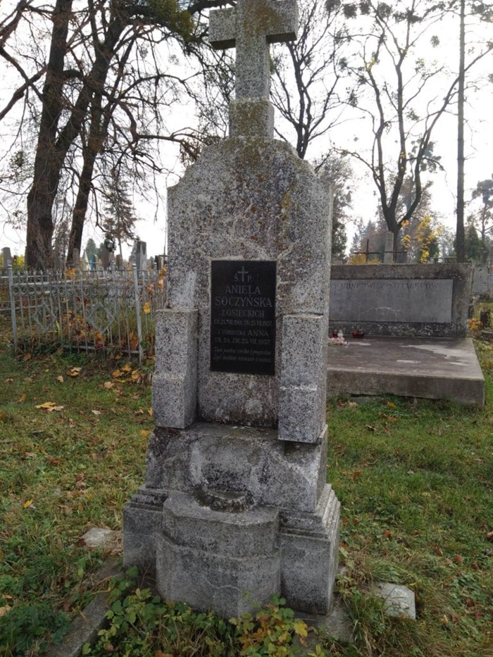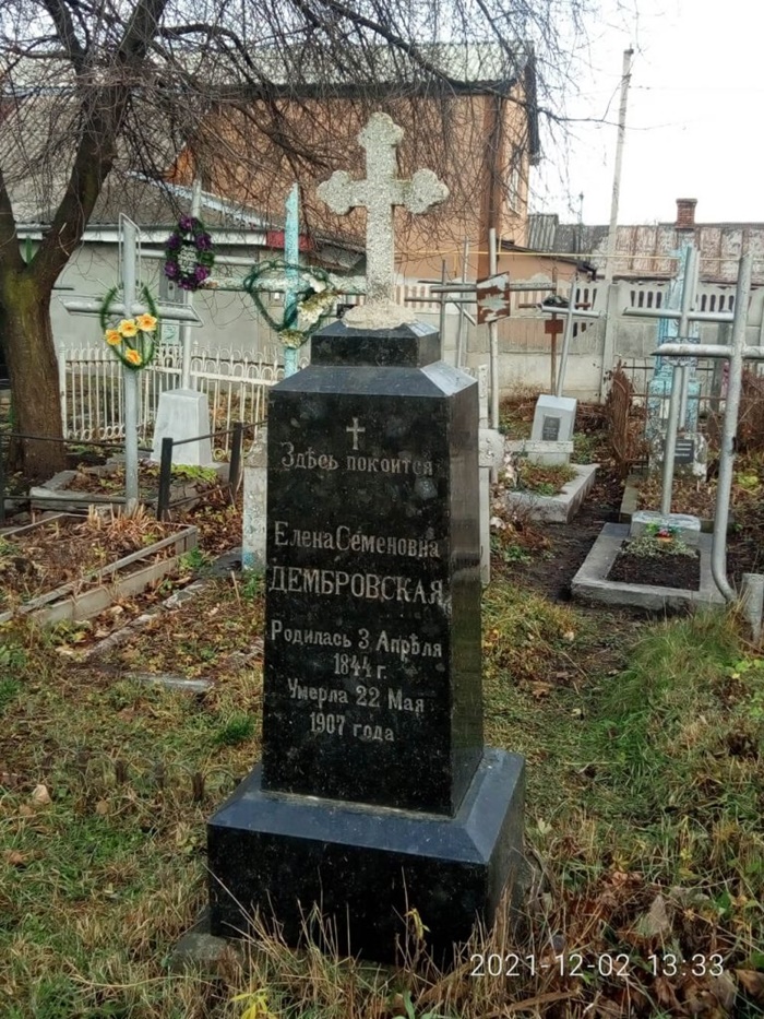…Добротний, хоча й трохи поруйнований, надгробок на майже сторічному похованні, на гранітній плиті якого значиться, що тут поховано графиню Марію Коморовську з роду Врочиньських, яка померла в 1933 році у віці 70 років, і була вона донькою маршалка Заславського (старовинна назва міста Ізяслав, – прим. авт.) повіту. Надмогильний напис завершується так: “Діти просять помолитись за неї Богу”.
