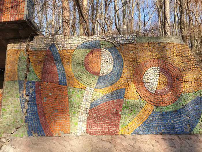 Будучи тут, рекомендую ще оглянути автобусну зупинку. Вона оздоблена автентичною мозаїкою з рибами в стилі магазину «Океан». Можливо, навіть автор мозаїки був той самий. На жаль, цей шедевр, як і фантомна залізниця, поступово зникає з ландшафту міста. То ж не проґавте, поки вона ще є.