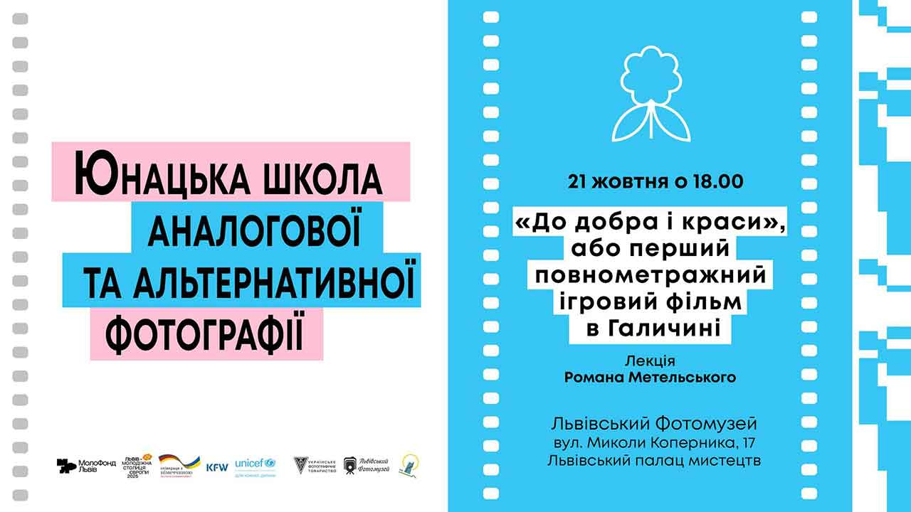 У вівторок, 21 жовтня 2025 року, о 18:00 у Львівському фотомузеї (Львівський палац мистецтв, вул. Коперника, 17) відбудеться лекція Романа Метельського «До добра і краси», або перший повнометражний ігровий фільм в Галичині».