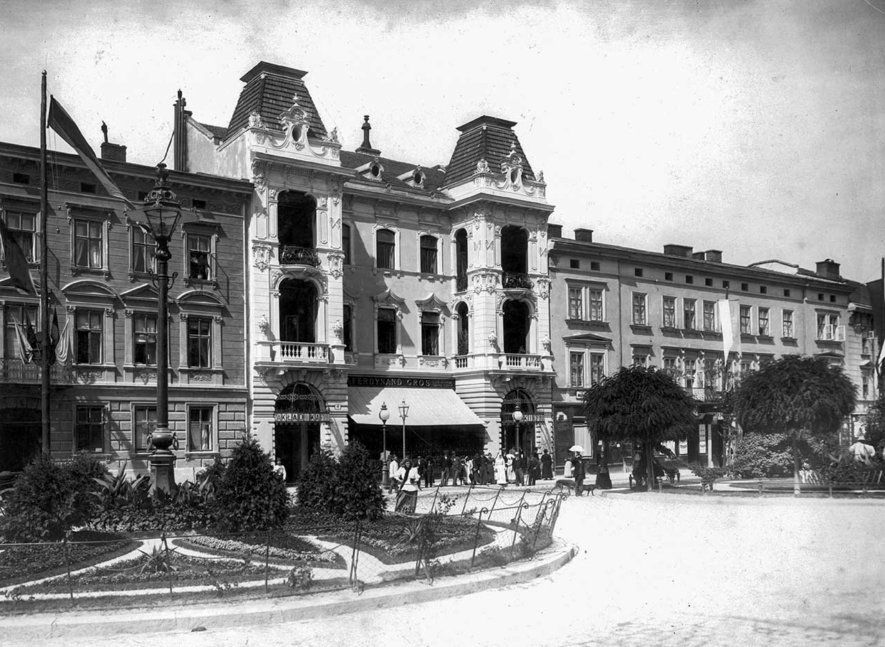 ![Будинок по вул. Академічній [пр. Шевченка], 8 (крайній праворуч), де від 1912 р. знаходився кінотеатр «Фрашка», що належав Ф. Сельському. Фото 1894 р. Джерело: колекція Котлобулатових.](https://photo-lviv.in.ua/wp-content/uploads/2021/10/8-Akademicka-2.jpg)
