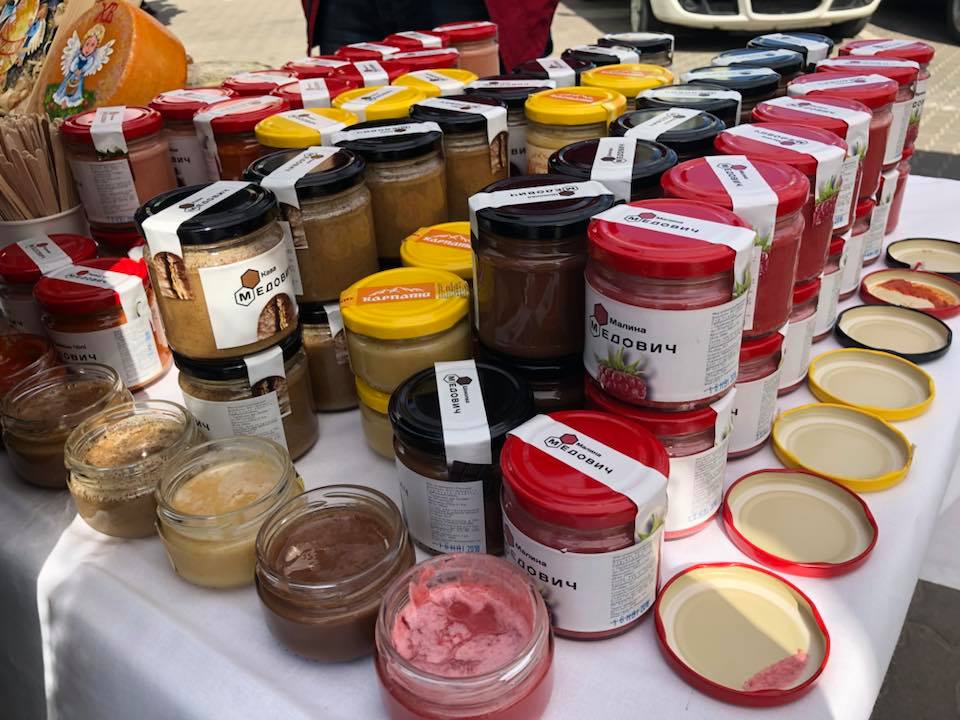 І справді, на прилавках українських виробників продукти, які важко знайти у магазині — соуси із найгостріших перців чи мед із кавою, різні види м’яса, натуральні чіпси, які роблять при вас чи тендітні макаруни, або ж свіжовипечений хліб і багато іншого та надзвичайно смачного. Ну і для гурманів — дегустація вина від кількох представників цієї справи. А ті, хто хочуть самі зайнятись виноробством мають можливість придбати виноградну лозу.
