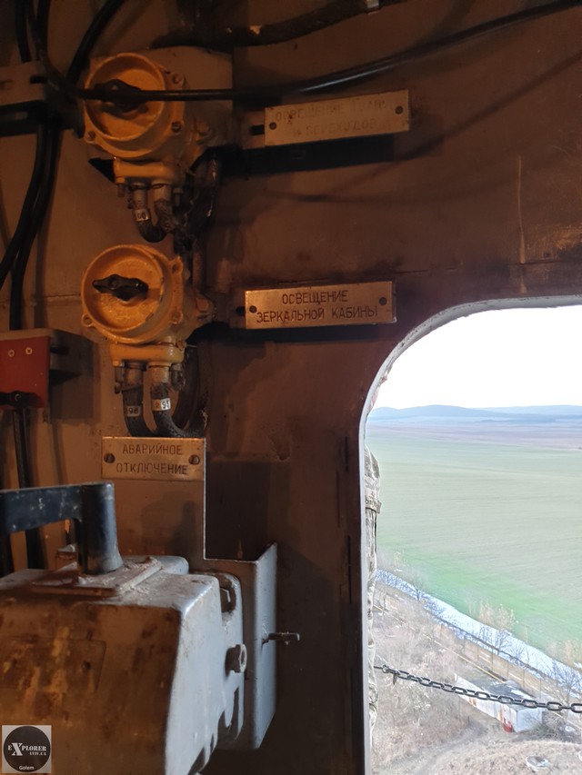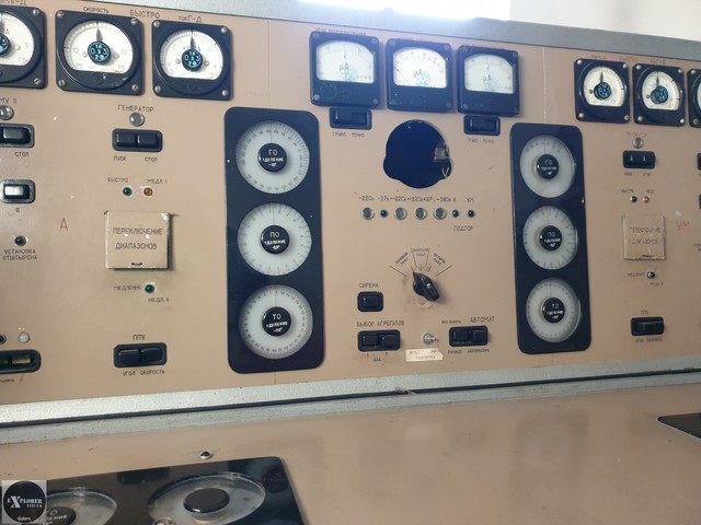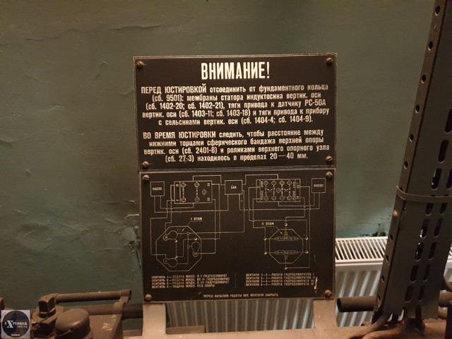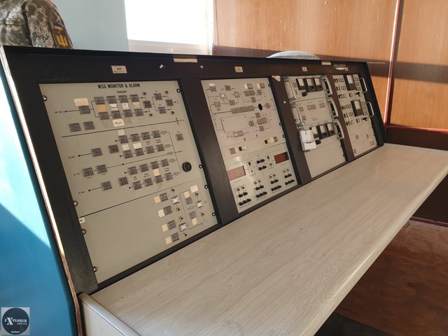 Перша антена 25мВсередині все по корабельному: акуратно і попри стінкуІ хоч в приміщенні місця дуже багато, але вся апаратура зроблена компактно як на справжньому кораблі.Покажчик наведення антени на супутникТаких стійок було три на різних поверхах. Кожна з них могла керувати антеною.Оооо! Нам сюди 🙂 !Тут вже сучасніше обладнання для приймання і передавання сигналівБлок-схема автоматичної системи керування антеною.Дистанційно-керовані підсилювачі і джерела шумуРобоче місце оператора антениЛампочки світяться! Казали що все тут робоче. Просто не використовується.Піднімаємося вгору до самої антени. По корабельному тісно та затишно. Видно гідродвигуни що рухали антеною. (с)фото Станіслав СніжкоКоли антена виходила на позицію то її піддомкрачували щоб зняти навантаження з сервоприводу. Також домкратами вони регулювалася по горизонталі.Інструкція як направляти антену на супутникПокажчик куди зараз «дивиться» антенаЧервона кнопка запуску міжконтинентальних ракет в Бродах. Сховали сюди щоб ворог не здогадався.Стоп-КранНу що, вихід у відкритий космос?