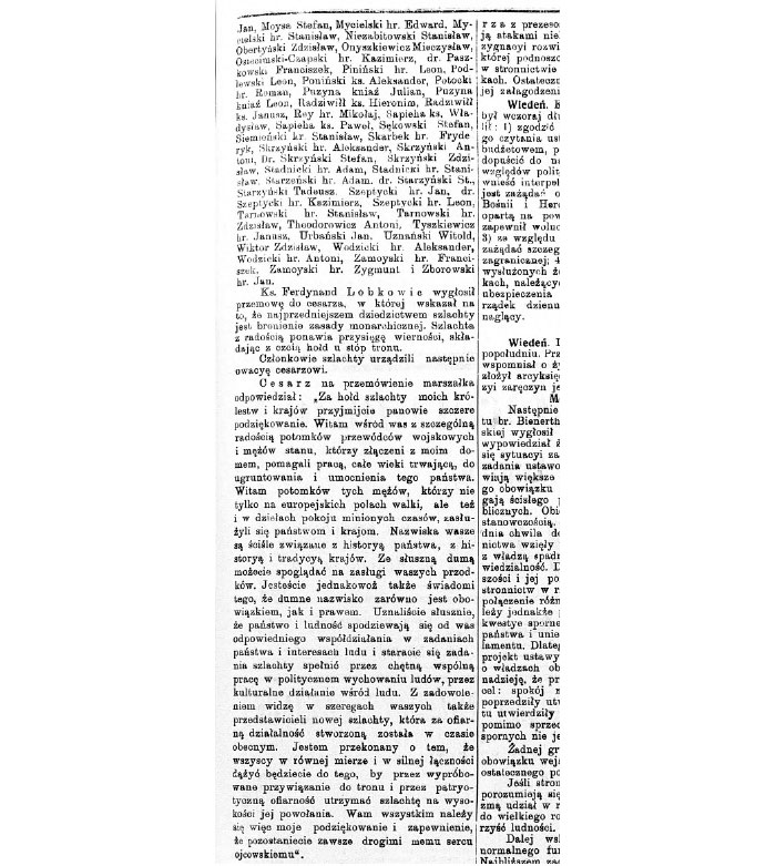 [Czas. — № 257. — 7 листопада 1908 р. —. С. 1; Gazeta Narodowa. — № 258. — 8 листопада 1908 р. — С. 2]