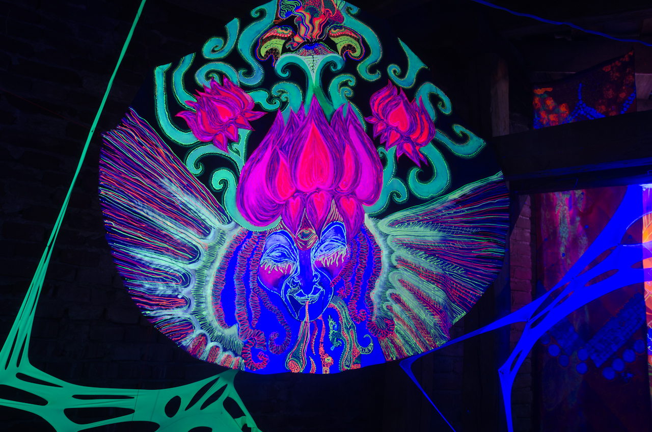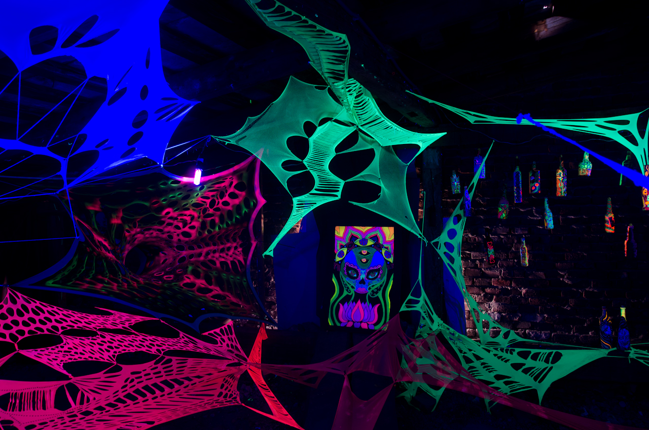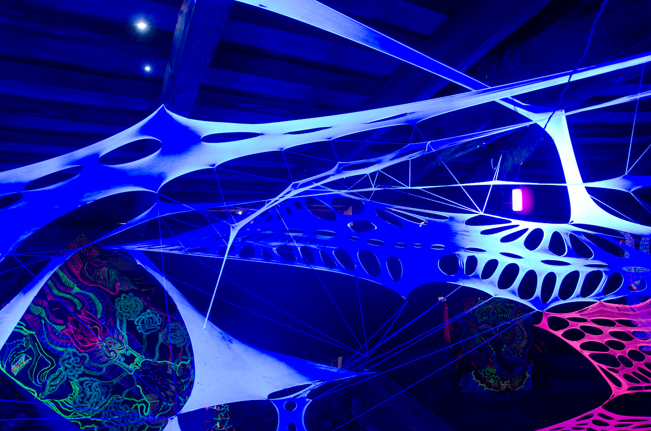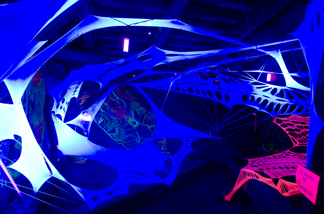 “Матеріальний світ – він надзвичайно привабливий, в ньому багато насолод, в ньому багато спокус, але насправді це все ілюзія. Це -майя. Тому мої роботи в стилі Visionary поєднані з інсталяціями зі стрейчевих тканин, які представляють собою павутиння матеріального світу. Я хочу щоб ми усвідомили що насправді вічні цінності, внутрішнє світло людини – вони є найважливішими і ми не мусимо потрапляти в ці тенета, в це ілюзорне павутиння і мусимо дивитися всередину” – розповідає мисткиня про свою інсталяцію.