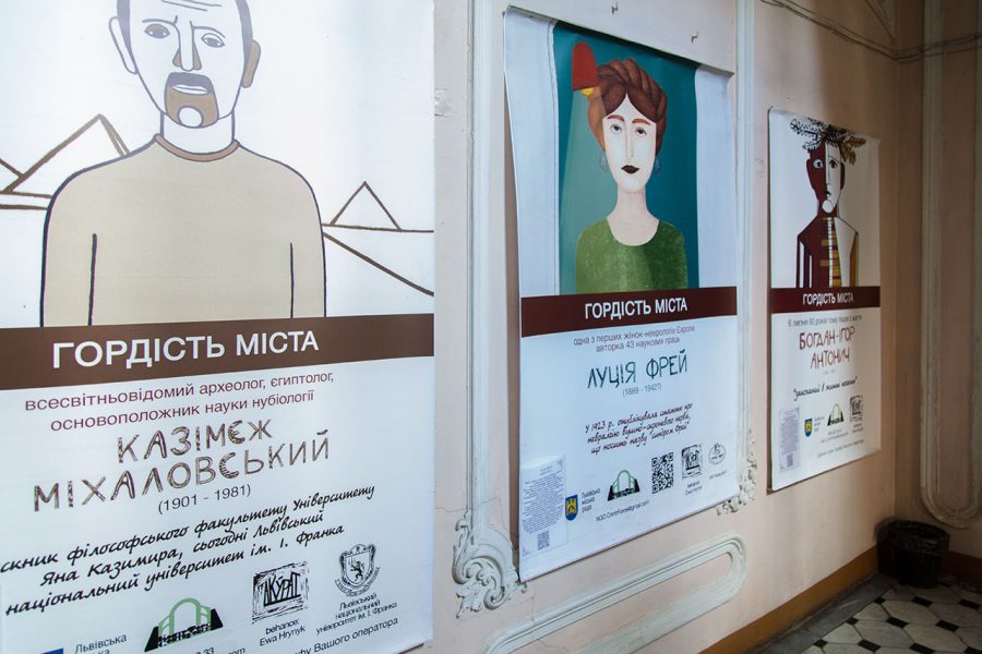 Виставка плакатів була спільним проектом Наукової бібліотеки ЛНМУ ім. Данила Галицького та ГО “КонтрФорс” на підтримку інформаційного проекту “Гордість міста” і представляла 6 відомих львів’ян, котрі прославили наше місто у різних галузях – медицині, архітектурі, математиці, археології та ін.