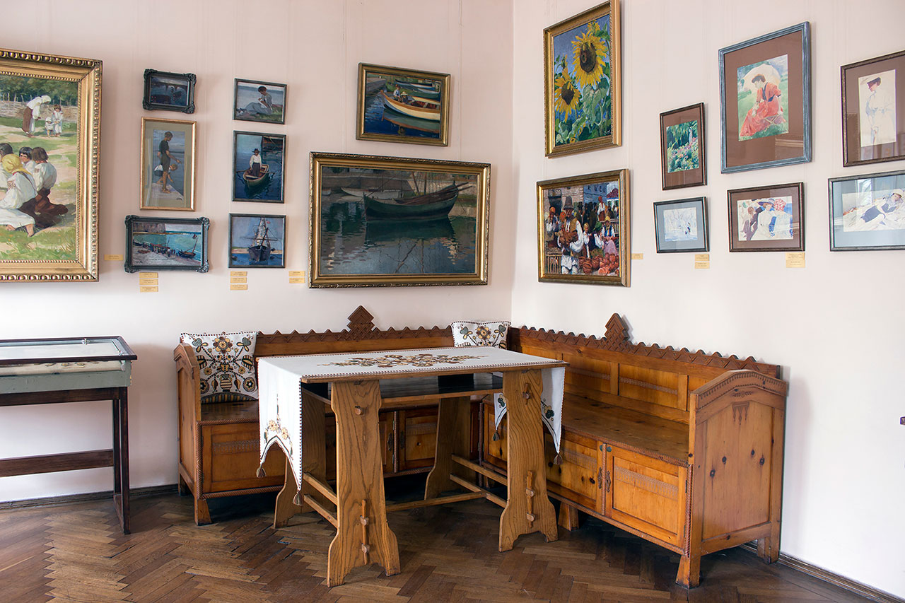 Олійне малярство зібране в майстерні та особистій кімнаті художниці. Нове трактування народної теми простежується у низці картин, написаних на пленері під час побуту у Косові упродовж 1908-1913 рр. – «Соняшники», «Діти на леваді», «Ярмарок у Косові», «Пастушок з гусьми» (усі – 1908), а також у с. Домажир біля Львова – «Урочисте свято», «Бабуся. На прощу» (1913). Вперше на експозиції показано імпресіоністичні етюди з подорожі на Адріатику 1911 р. і декоративні етюди із циклу «Тур’є», створені 1928 р. під час побуту в с. Тур’є на Бойківщині.