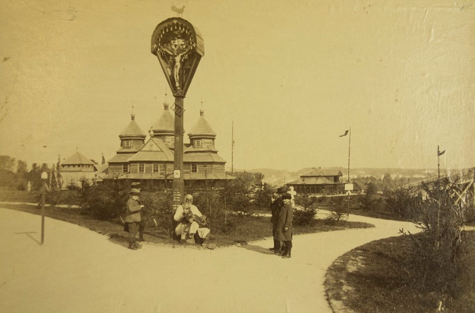 У 1894 році у Львові відбулась Загальна краєва виставка. У південно-західній частині виставки було організовано Етнографічний сектор. Саме в ньому була збудована дерев’яна триверха хрестовокупольна церква. Храм спорудив тесля Лесь Кобчук з села Яворова з допомогою своїх шести теслярів-побратимів з Гуцульщини.